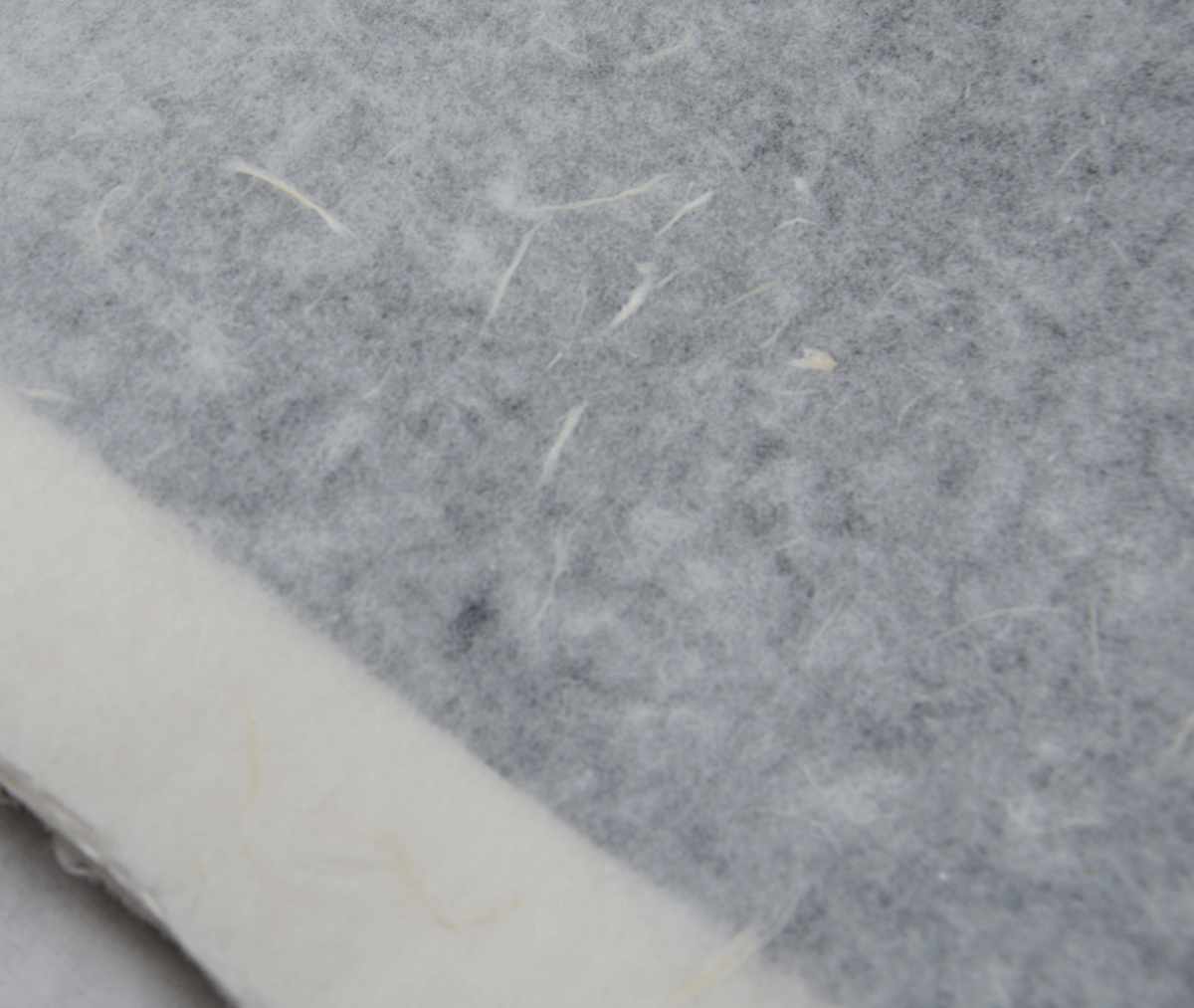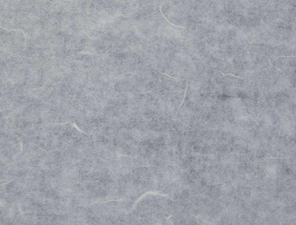 Weißes, handgeschöpftes Papier mit unregelmäßigen, hellen, länglichen Fasereinschlüssen (siehe Bilder) die an Strohseide erinnern. Wolkig geschöpft, mit 4- seitigem Büttenrand und dezenter Siebstruktur. Jeder Bogen ein Unikat.